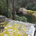 definitely an option. Three Bedrooms each feature their own full Bathrooms with the third Bedroom having it’s own entrance and Deck, great for room mates, guests or in-laws. The Master Bath has a jetted garden tub/shower. The Laundry Room has space to accommodate a toilet and sink if a half bath is desired. Exterior shed provides storage and cover for fire wood. This property has so much to offer! While on the Deck, you will hear the waterfall and bold mountain stream. As you walk to the Waterfall Deck, you pass the spring fed Pond that at one time was stocked with trout. Some catfish reside in the Pond now. Between the Pond and the Waterfall, a charming stone seating